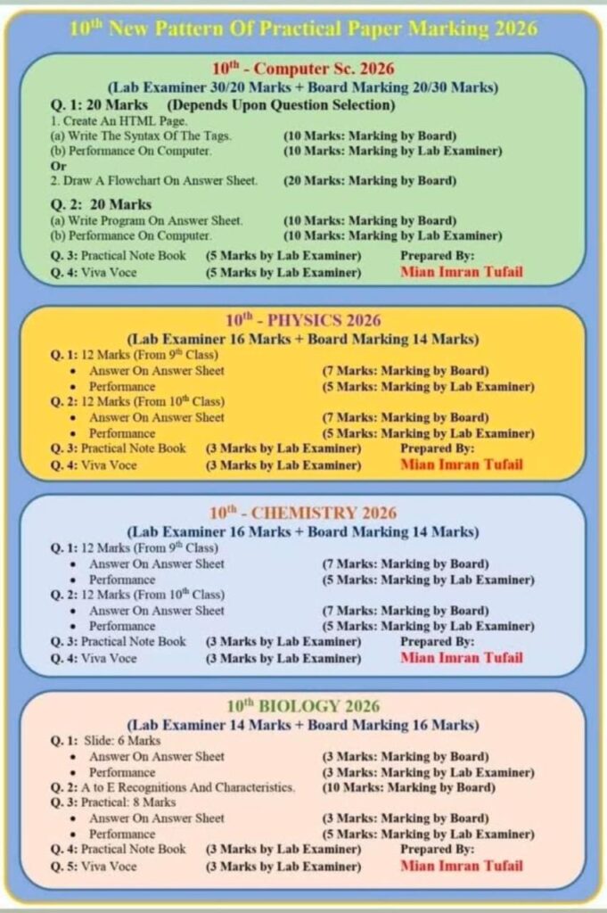 10th class New Pattern of Practical Paper Marking 2026