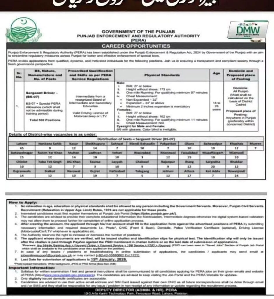 پنجاب کے 41 اضلاع میں پیرا فورس کی 500 آسامیوں کا اعلان مرد و خواتین 15 جنوری تک اپلائے کریں