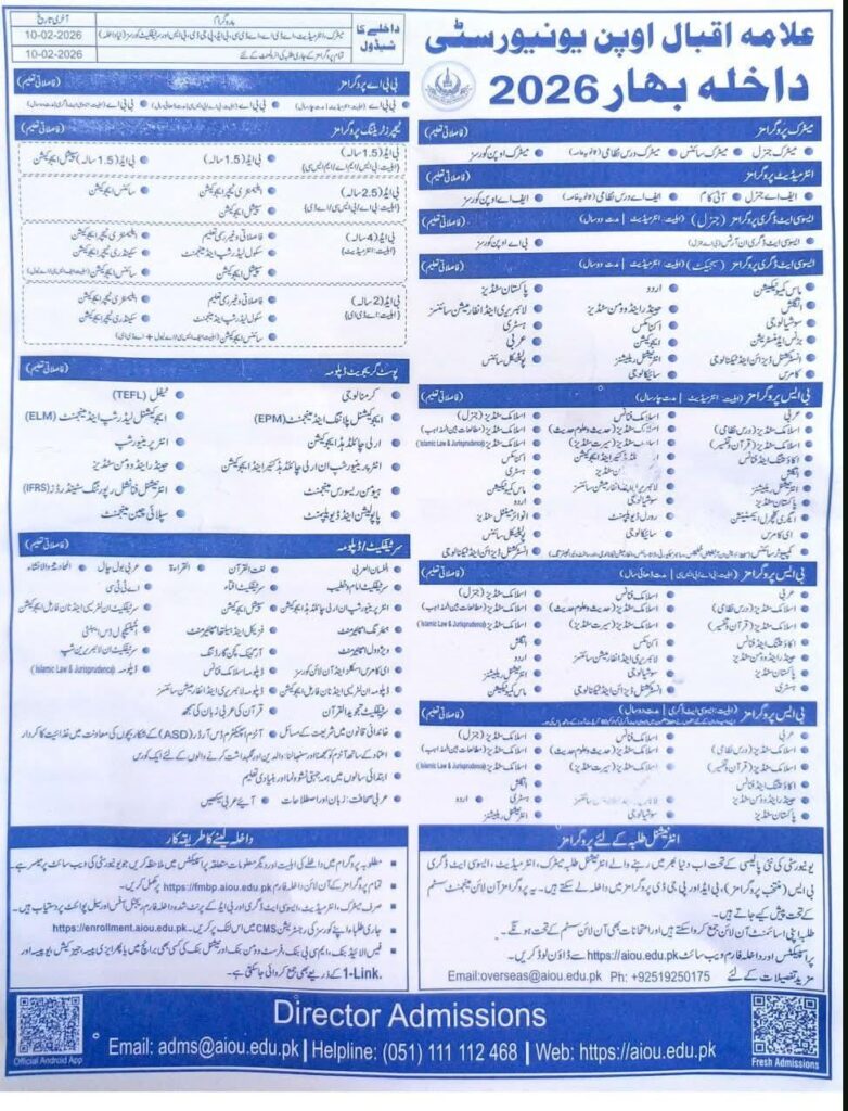 Allama Iqbal Open University Admission Spring 2026