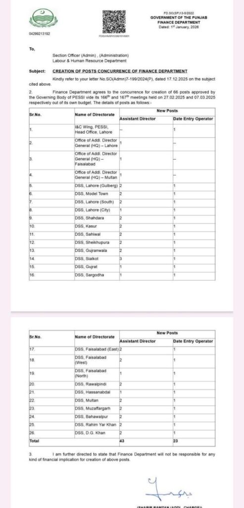 43 Seats of Assistant Director AD BS-17 and 23 Posts of Data Entry Operator in PESSI will be advertised soon by PPSC.
