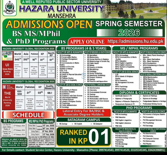 Apply Online: https://lms.hu.edu.pk/web/signin