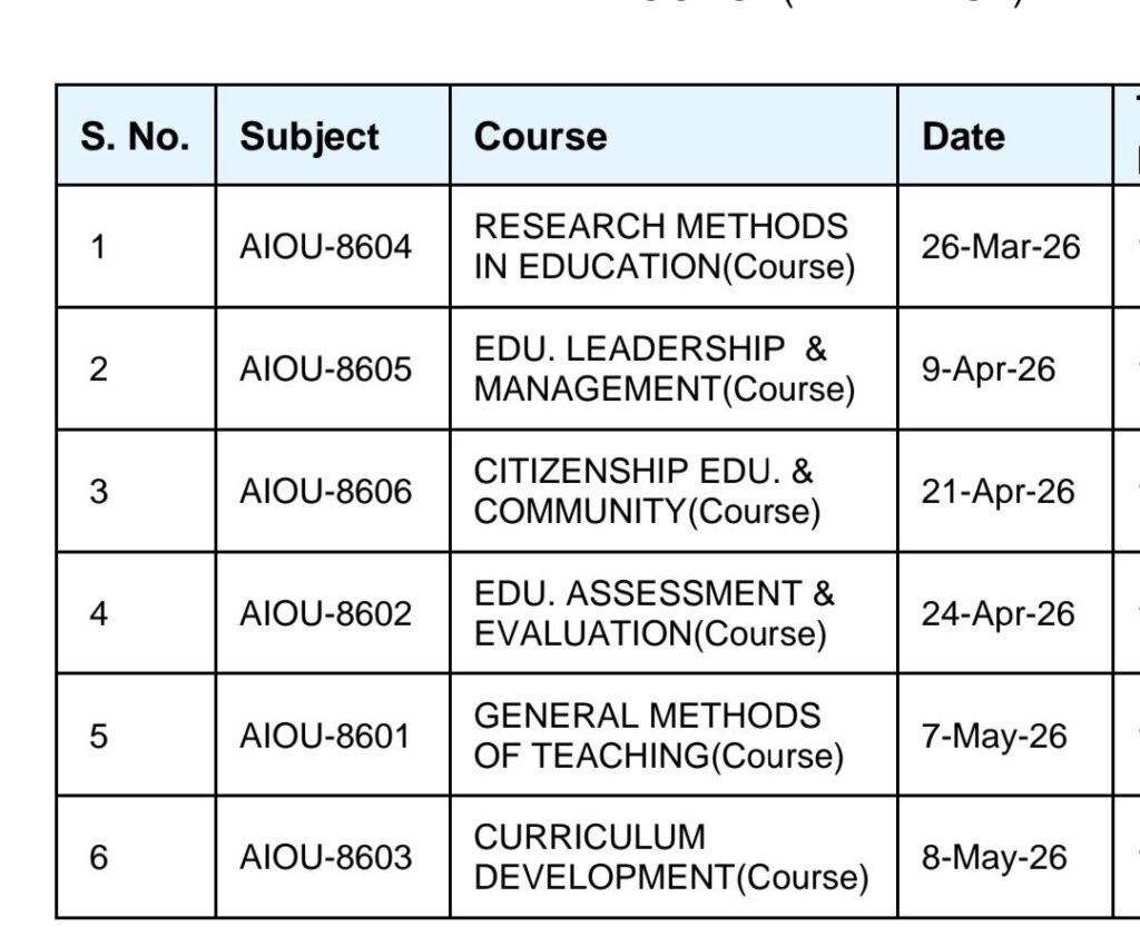 Date Sheet B.ed 1.5 Revised 1st BatchBy Majid Farooq / April 10, 2026 Date Sheet B.ed 1.5 Revised 1st Batch