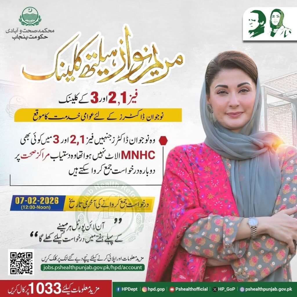 وہ نوجوان ڈاکٹرز جنہیں فیز 2,1 اور 3 میں کوئی بھی MNHC الاٹ نہیں ہوا تھا وہ دستیاب مراکز صحت پر دوبارہ درخواست جمع کروا سکتے ہیں