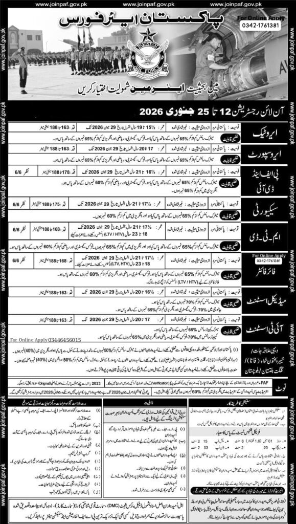 Pakistan Air Force Recruitment for Boys Only 2026