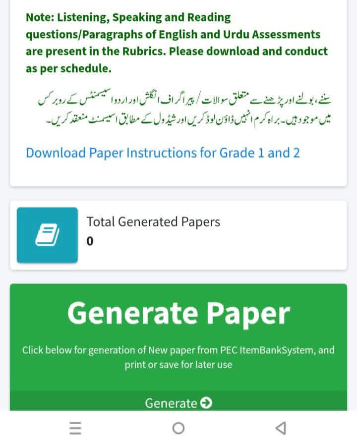لاگ اِن ہونے کے بعد، آپ جماعتیں اور مضامین منتخب کر سکتے ہیں، آبجیکٹو اور سبجیکٹو حصے تیار کر سکتے ہیں، اور Ctrl + P دبا کر حتمی پرچے پرنٹ کر سکتے ہیں یا انہیں PDF فائلوں کے طور پر محفوظ کر سکتے ہیں۔