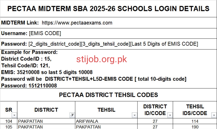 PECTAA Username and Password for SBA Exam 2026