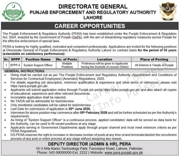 PERA System Support officer Multiple Positions in all Districts & Tehsils