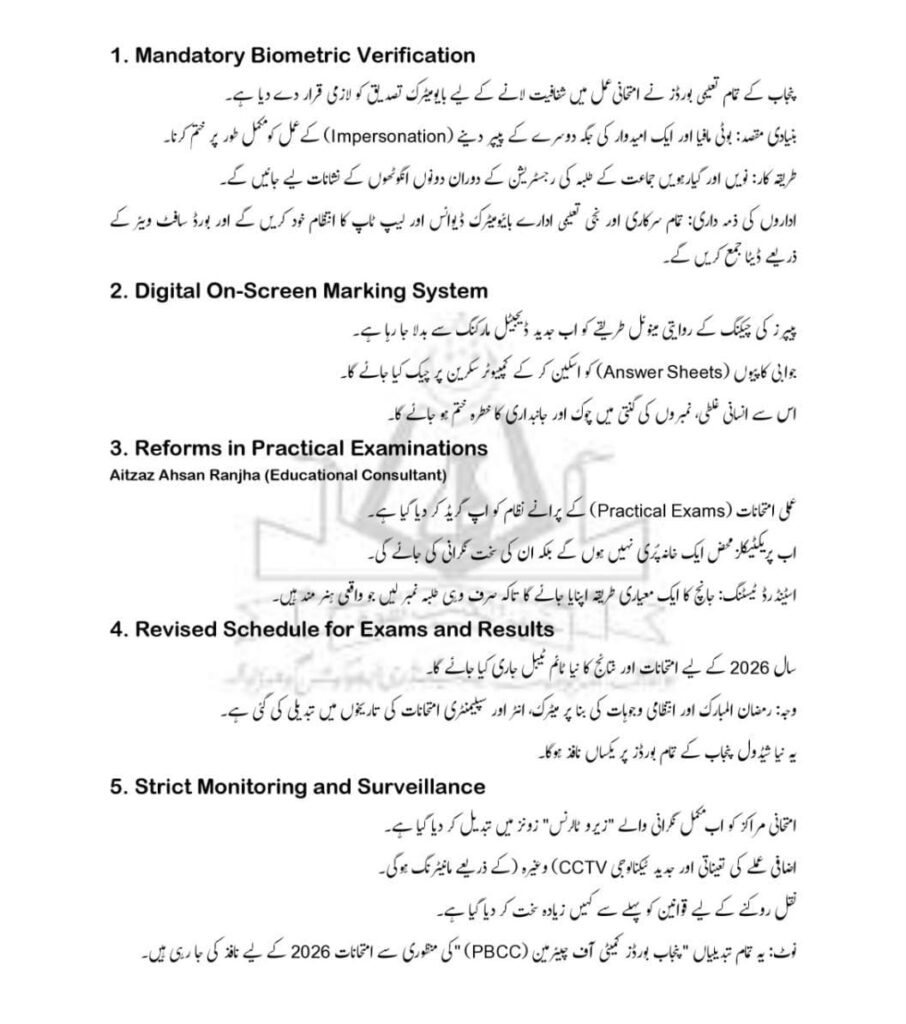 📌 نوٹ: یہ تمام تبدیلیاں پنجاب بورڈز کمیٹی آف چیئرمین کی منظوری سے امتحانات 2026 کے لیے نافذ کی جا رہی ہیں۔