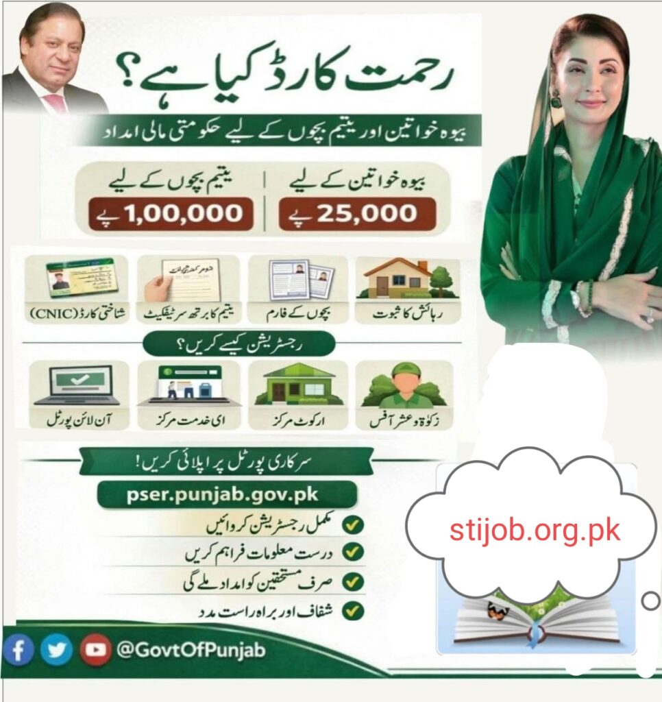 Learn what the Punjab Rehmat Card is and how to apply online. Get details about government financial assistance for widows (25,000 rupees) and orphaned children (100,000 rupees). Read now!