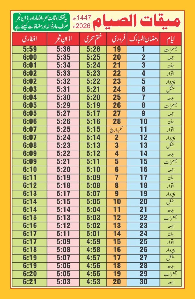 Ramadan Kareem Roza sehr Aftaar Time 2026By Majid Farooq / February 16, 2026 عارف والا اور مضافات کیلئےRamadan Kareem Roza sehr Aftaar Time 2026