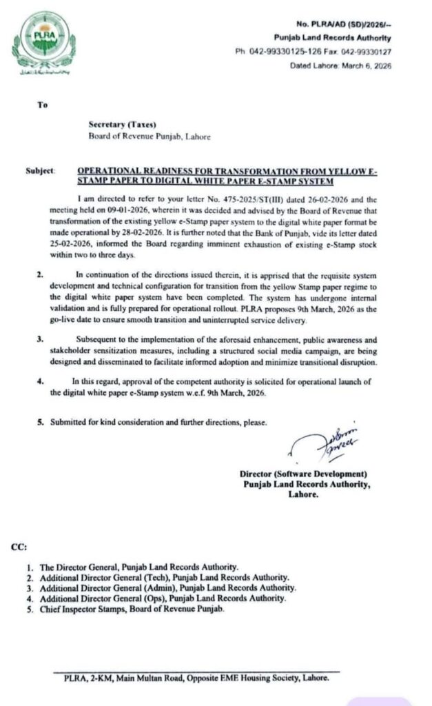 پنجاب میں پیلا اسٹامپ پیپر ختمرجسٹری سفید پیج پر کنورٹآن لائن PSID سے ادائیگی کے بعد کسی بھی کاغذ پر اسٹام پیپر کا پرنٹ حاصل کیا جاسکے گا…!!!
