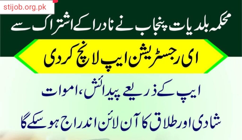 محکمہ بلدیات پنجاب نے نادرا کے اشتراک سے ای رجسٹریشن ایپ لانچ کر دی ہے ۔