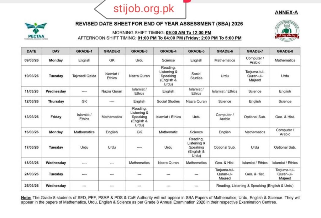 SBA Revised Date Sheet stijob.org.pk