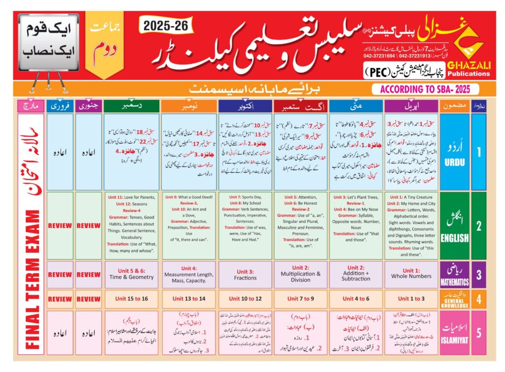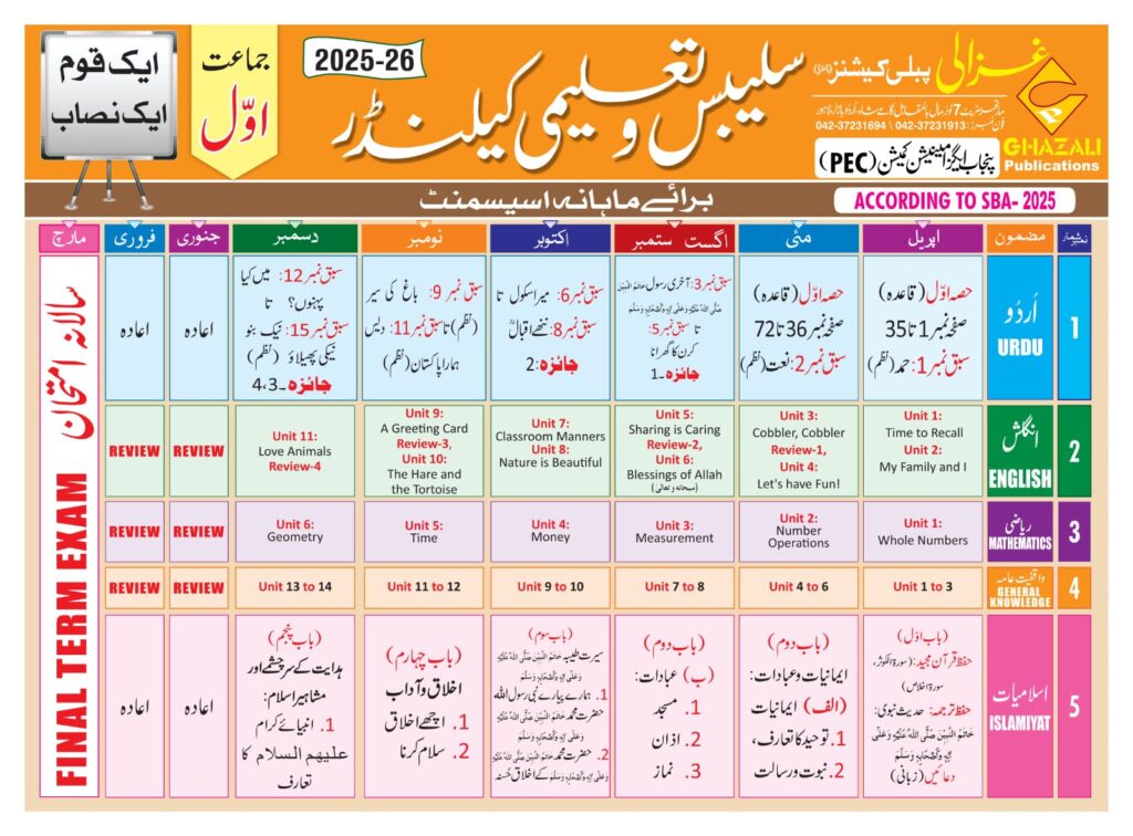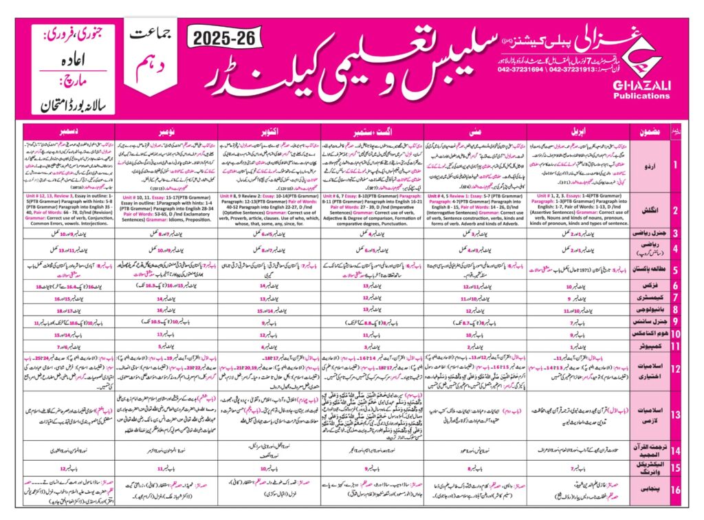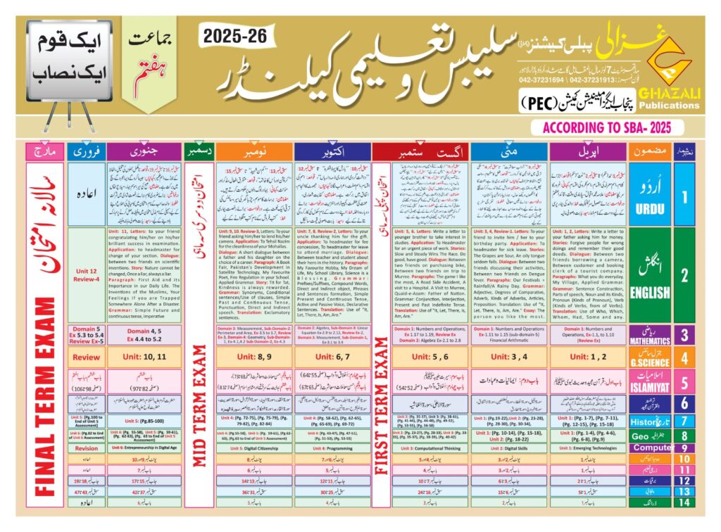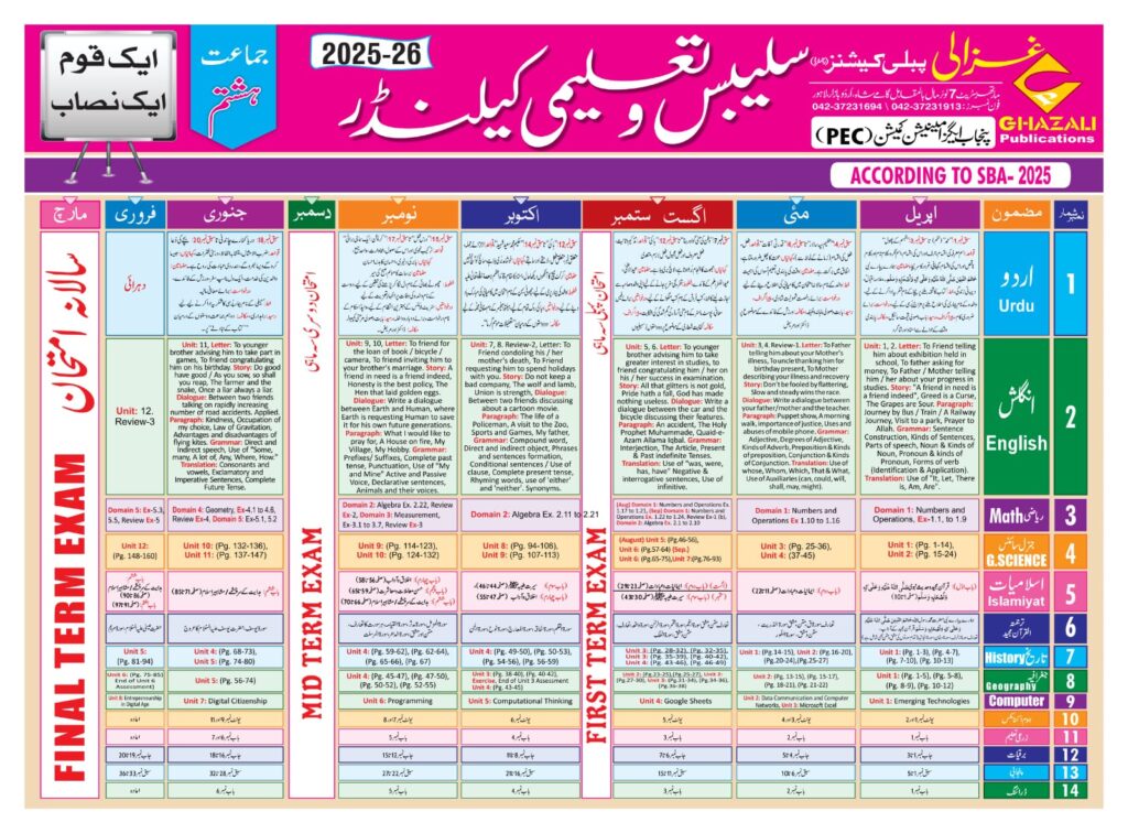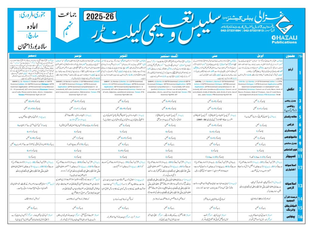 Taleemi calendar class 1,2,3,4,5,6,7,8,9,10 pdf files