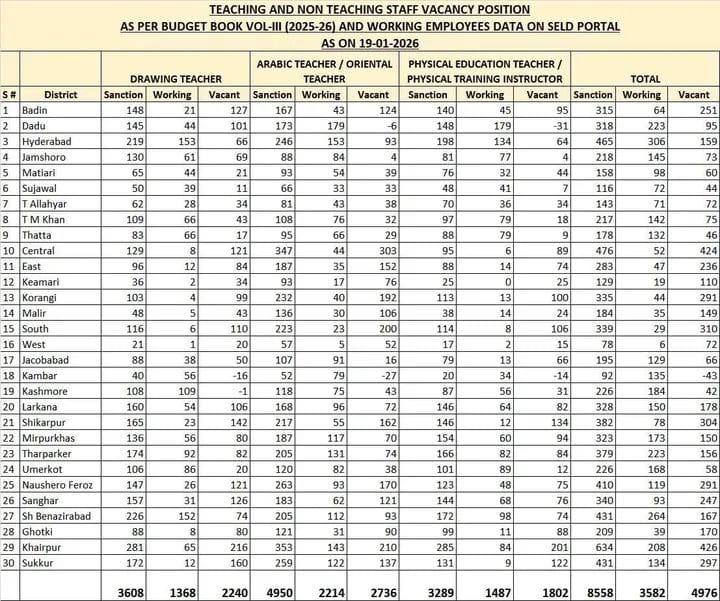 Vacancy position as per 19 January 2026 OT , DT , & PET .